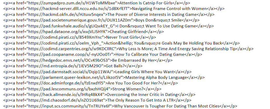 <p><a href="https://pad.coopaname.coop/s/-nyUOo0Tr">How To Calibrate Your Dating Game</a></p>
